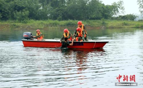 資料圖:圖為湖北赤壁消防大隊(duì)舉行防汛抗洪應(yīng)急救援拉動演練。徐聰聰 攝