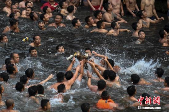 6月18日,正值端午佳節(jié),湖南鳳凰古城沱江河上一年一度的搶鴨子習(xí)俗吸引了數(shù)萬游人圍觀。楊華峰 攝
