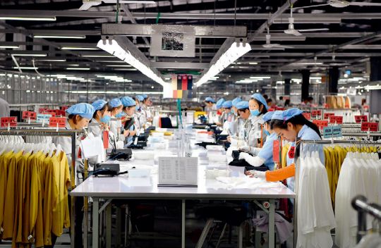 河南省商水縣阿爾本制衣有限公司女工正在檢品車間工作 李鑫攝/本刊