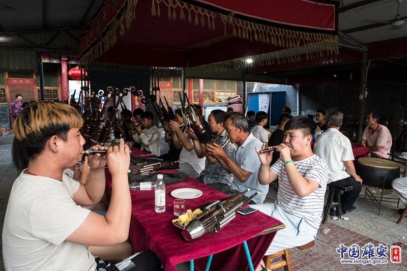 每年農(nóng)歷四月十九、二十、二十一,雄安新區(qū)安新縣圈頭村,男女老少都會(huì)聚集在村里的藥王廟,音樂會(huì)的傳人們演奏起各式傳統(tǒng)曲目,以此來祭祀藥王,感念千百年來對(duì)當(dāng)?shù)卮迕竦挠幼o(hù)。