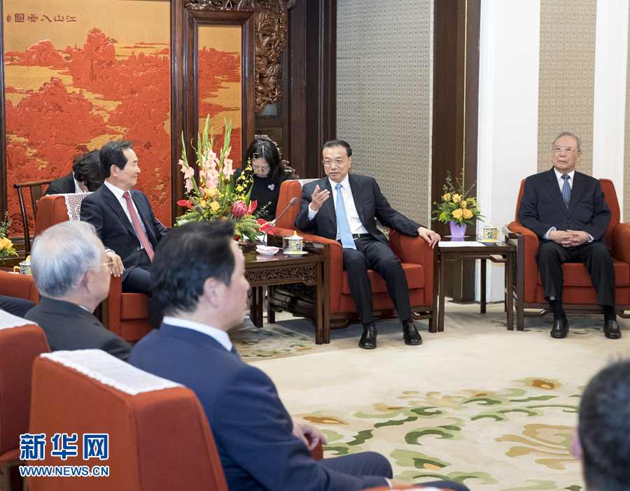 6月29日,國務院總理李克強在北京中南海紫光閣會見來華參加首輪中韓企業(yè)家和前高官對話的韓方代表,并同他們座談交流。 新華社記者 王曄 攝