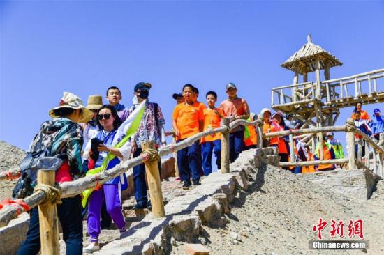 資料圖:游客在棧道上體驗(yàn)旅游項(xiàng)目。王斌銀 攝