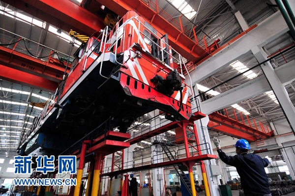在中國鐵路西安局集團(tuán)有限公司寶雞機(jī)車檢修廠聯(lián)合檢修庫內(nèi),職工們正緊鑼密鼓地進(jìn)行機(jī)車落車組裝作業(yè)。