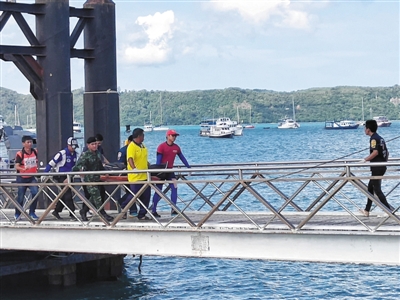 7月6日,泰國普吉島查龍碼頭,救援車輛停靠在碼頭等待。 通訊員 卜志輝 攝