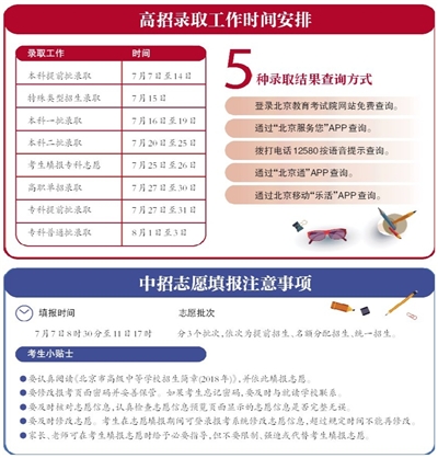 今天,北京2018年高招錄取和中招志愿填報(bào)正式啟動(dòng)。今年高校在京招生實(shí)行計(jì)算機(jī)遠(yuǎn)程網(wǎng)上錄取,考生可通過5種方式查詢錄取結(jié)果。同時(shí),今年北京中招志愿填報(bào)分為3個(gè)批次,共設(shè)置24個(gè)志愿。