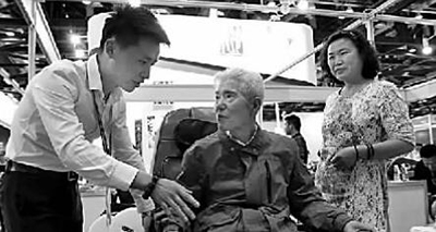 第七屆中國(guó)國(guó)際養(yǎng)老服務(wù)業(yè)博覽會(huì)現(xiàn)場(chǎng),一款理療設(shè)備吸引了老年觀眾的關(guān)注。新華社發(fā)