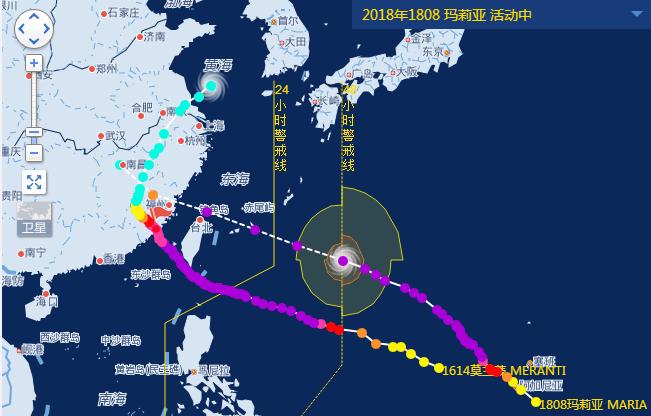 臺風“瑪莉亞”和“莫蘭蒂”的移動路徑圖