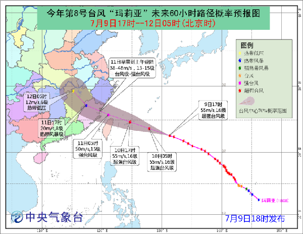 張玲:“瑪莉亞”影響最為嚴重的時段為10至11日。10日開始,臺灣以東洋面、東海南部以及臺灣海峽北部的風力會逐漸加大到10-12級,臺風中心經(jīng)過的附近海域和地區(qū)的風力可達13-15級。此外,10日夜間至11日,包括臺灣、福建、浙江東南部以及江西等地將會出現(xiàn)大到暴雨,部分地區(qū)會出現(xiàn)大暴雨到特大暴雨。由于降水強度強,需要防范降水帶來的城市內(nèi)澇、滑坡、泥石流等次生災害影響。由于臺風強度比較強,沿海風力大,目前正值暑期時段,在沿海地區(qū)旅游的公眾和相關部門也要做好應急預案;相關水域水上作業(yè)和過往的船舶應當回港避風,加固港口設施,防止船舶走錨、擱淺和碰撞。