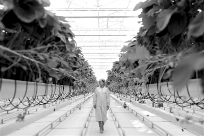 創(chuàng)新發(fā)展不僅停留在工業(yè)層面,2016年9月,海升集團投資建設(shè)的5萬平方米現(xiàn)代智能玻璃溫室草莓栽培項目“草莓星球”正式投入使用。項目采用智能升降溫管理系統(tǒng)、精準(zhǔn)水肥循環(huán)系統(tǒng)和基質(zhì)吊架立體栽培等來自荷蘭的工業(yè)化現(xiàn)代農(nóng)業(yè)生產(chǎn)技術(shù),實現(xiàn)了溫、光、氣、水、肥的智能精準(zhǔn)控制,草莓實現(xiàn)了一年9個月產(chǎn)果,產(chǎn)量較以往提升了3倍以上。