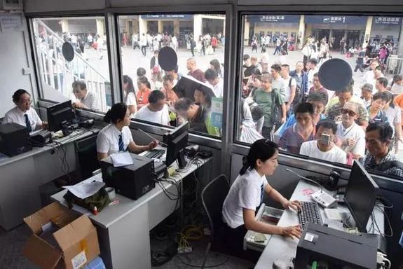 第二天凌晨,排隊(duì)的旅客少了,隊(duì)員們接著連軸轉(zhuǎn),關(guān)了自己的窗口,坐到其他售票員的窗口。