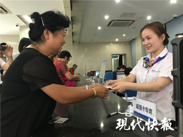 7月11日上午10點(diǎn),南京市熙南里智匯營(yíng)業(yè)廳,市民周萍站到達(dá)一個(gè)特殊的窗口—— " 誠(chéng)信卡專席"。在這里,她持有的市民卡將進(jìn)行升級(jí),變身"市民誠(chéng)信卡"。