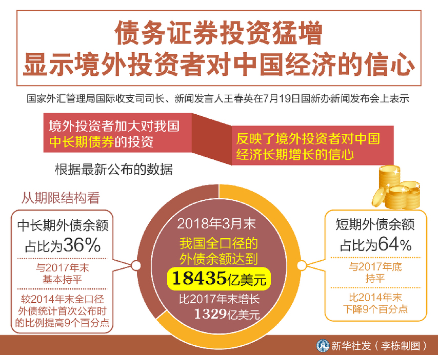 新華社北京7月19日電(記者劉開雄)“我們觀察新增長的外債中,有八成是債務(wù)證券?!眹彝鈪R管理局國際收支司司長、新聞發(fā)言人王春英在19日國新辦新聞發(fā)布會上表示,境外投資者加大對我國中長期債券的投資,反映了境外投資者對中國經(jīng)濟長期增長的信心。