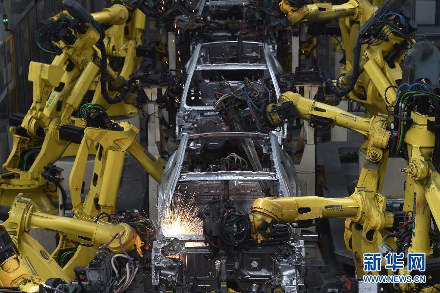 在寧波市北侖區(qū)吉利汽車春曉制造基地拍攝的自動(dòng)化焊接線(2016年7月22日攝)。吉利汽車春曉制造基地采用全自動(dòng)化焊接線,通過(guò)114臺(tái)焊接機(jī)器人完成車身各部分的焊接,以保證車身制造精度的穩(wěn)定。 新華社記者 黃宗治 攝
