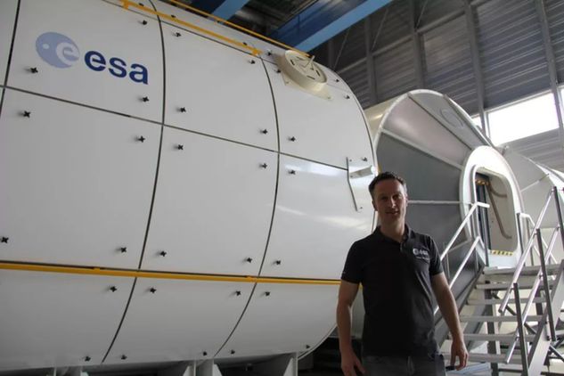 7月18日,德國宇航員馬天站在歐航局國際空間站模擬艙外。(新華社記者張毅榮攝)