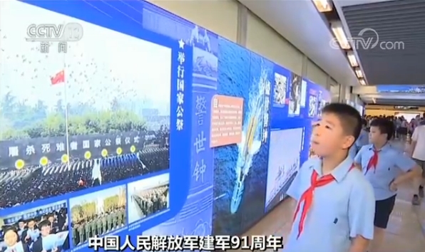八一前夕,江蘇南京市首個國防教育主題車站建成開放,地鐵通道“變身”國防展覽展廳,營造濃厚八一節(jié)日氛圍。展覽主題為“愛我國防愛我軍”,一幅幅圖片濃縮著人民軍隊91年的光輝歷程。聲光電立體展示,吸引來往乘客和市民駐足參觀。