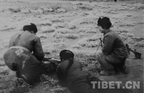 圖為西藏文工團老照片:女文工隊員也很喜愛射擊 圖片由王勉之提供