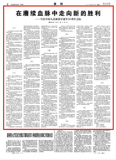 2018,八一。當(dāng)歷史的時(shí)針指向這個神圣光榮的日子,讓我們回望那光耀千秋的偉大征程,銘記歷史、不忘初心、牢記使命、不懈奮斗,確保人民軍隊(duì)血脈永續(xù)、根基永固、優(yōu)勢永存,不斷書寫強(qiáng)國強(qiáng)軍更為輝煌的篇章!請關(guān)注今日出版的《解放軍報(bào)》的文章——