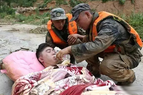 ?。?)2016年,“莫蘭蒂”臺風后,官兵徒步深入災區(qū),在半米深的泥石流和亂石堆中,抬著受傷人員與死神賽跑。一路八小時,戰(zhàn)士們餓著肚子,把僅有的一瓶礦泉水留給了受傷群眾。有中國軍人的地方,就有依靠。