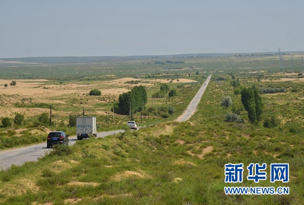在內(nèi)蒙古鄂爾多斯市杭錦旗,汽車行駛在錫烏公路上(7月26日攝)。新華社記者 鄒予 攝