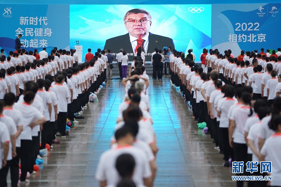 當天的活動現(xiàn)場,2022名機關(guān)干部、企業(yè)職工、社區(qū)居民表演了第九套廣播體操,展現(xiàn)了廣大北京市民喜迎冬奧會的熱切心情。