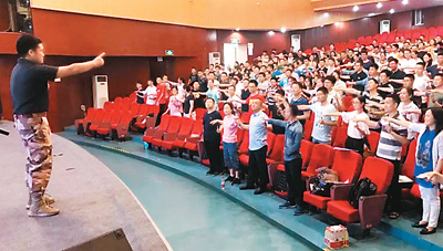 2018“平安留學”行前培訓在貴州、成都等地舉行。圖為西南交通大學培訓會現(xiàn)場,學生和教官在進行互動。出國留學行前培訓微信公眾號供圖