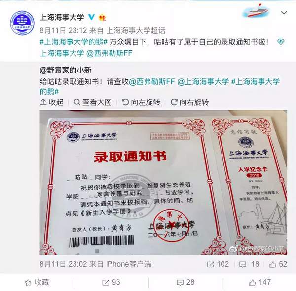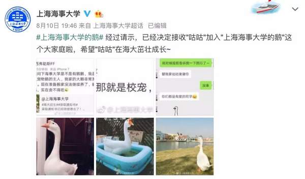經(jīng)過請示,上海海事大學(xué)回復(fù)稱,決定接收這只名叫“咕咕”的鵝加入“上海海事大學(xué)的鵝”這個(gè)大家庭。