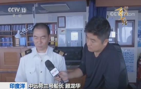 記者:“這里是裝載著超過11000多個集裝箱,正沿著海上絲綢之路歐洲線一路向西航行的中遠荷蘭號集裝箱貨輪。從上個月的28日上海出發(fā)以來,現(xiàn)在,我們已經(jīng)行駛到了到了印度洋的海面上。在這十多天的航行中,給我印象最深的就是即便是像現(xiàn)在已經(jīng)行駛在大洋之中航行,我們的荷蘭號也并不孤獨。大家看我們身后,一艘和荷蘭號幾乎同等規(guī)模,甚至是比我們還要大一些的集裝箱貨輪,也在這條絲路航線和我們并行航行著。 ”