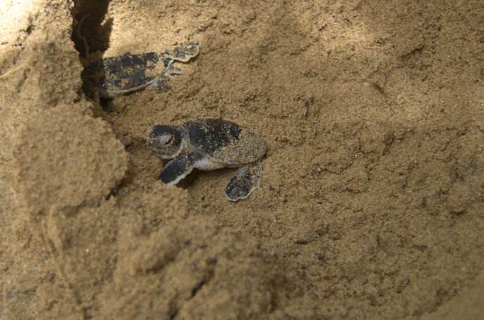 斯里蘭卡綿長的海岸線是海龜?shù)奶烊痪奂兀欢缃襁@一海洋“活化石”的數(shù)量正在急劇減少。原本,小海龜?shù)某苫盥示蜆O低,大約1000只海龜卵才能孵化出1只小海龜。近年來海龜生存越發(fā)艱難,被漁網(wǎng)纏住、偷捕行為屢禁不止以及度假村的擴(kuò)張等,都讓剛出殼的小海龜在回歸大海的短短路途中喪命。