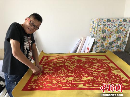 8月15日下午,經(jīng)過數(shù)月的剪制,徐州知名剪布藝人邢浩南終于在七夕節(jié)到來之前,創(chuàng)作完成一幅大型剪布作品《牛郎織女圖》。這是繼大型剪布作品《龍門》在2016年獲得英國世界紀錄認證公司認證后,邢浩南自主創(chuàng)作的又一反映中國傳統(tǒng)文化的大幅藝術作品。
