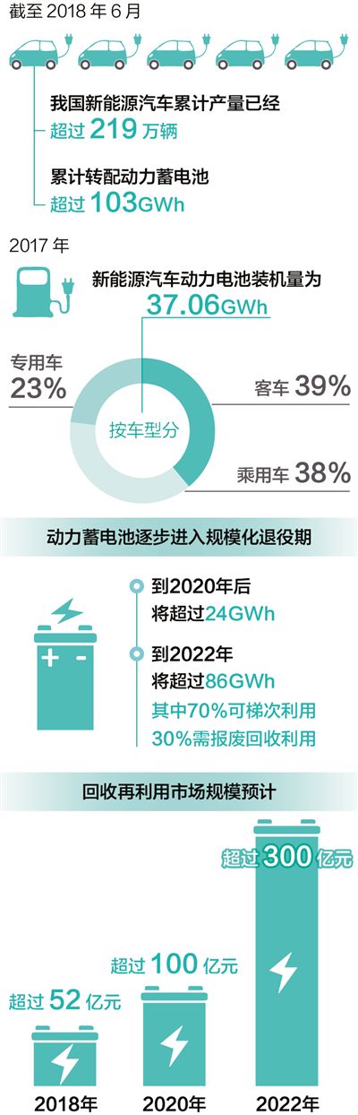 在政策和市場(chǎng)環(huán)境的雙重因素影響下,我國(guó)新能源汽車(chē)產(chǎn)量和保有量都已超全球總量的一半。據(jù)行業(yè)專(zhuān)家從企業(yè)質(zhì)保期限、電池循環(huán)壽命、車(chē)輛使用工況等方面綜合測(cè)算,2018年后,我國(guó)新能源動(dòng)力蓄電池將進(jìn)入規(guī)?;艘燮?,預(yù)計(jì)2020年累計(jì)退役量將超過(guò)20萬(wàn)噸。如果這些電池處置不當(dāng),一方面會(huì)給社會(huì)帶來(lái)環(huán)境影響和安全隱患,另一方面也會(huì)造成資源浪費(fèi)。