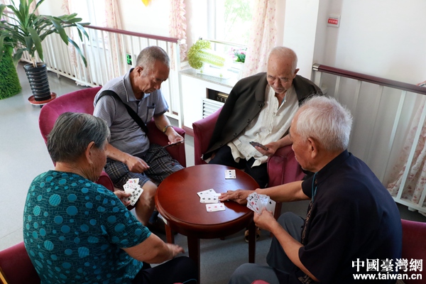 社區(qū)內(nèi)的老人們正在進行棋牌游戲。(中國臺灣網(wǎng) 尹賽楠 攝)
