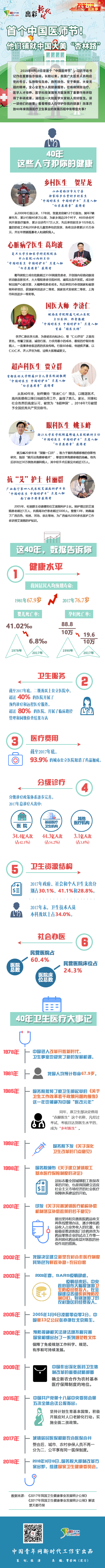 2018年8月19日是首個(gè)“中國(guó)醫(yī)師節(jié)”,習(xí)近平總書記作出重要指示強(qiáng)調(diào),長(zhǎng)期以來(lái),我國(guó)廣大醫(yī)務(wù)人員響應(yīng)黨的號(hào)召,弘揚(yáng)敬佑生命、救死扶傷、甘于奉獻(xiàn)、大愛(ài)無(wú)疆的精神,全心全意為人民健康服務(wù),在疾病預(yù)防治療、醫(yī)學(xué)人才培養(yǎng)、醫(yī)學(xué)科技發(fā)展等方面發(fā)揮了重要作用并取得了豐碩成果,涌現(xiàn)出一大批醫(yī)學(xué)大家和人民好醫(yī)生。讀一讀他們的故事,看看哪些人在守護(hù)你我的健康?改革開(kāi)放40年來(lái)我國(guó)醫(yī)療衛(wèi)生事業(yè)的發(fā)展歷程中有哪些大事?