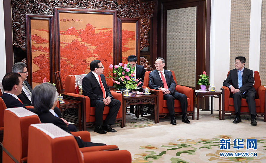 8月21日,國家副主席王岐山在北京中南海會見薩爾瓦多代理總統(tǒng)職務(wù)第一指定人岡薩雷斯、總統(tǒng)法律秘書阿爾瓦拉多、外長卡斯塔內(nèi)達(dá)。 新華社記者 張領(lǐng) 攝