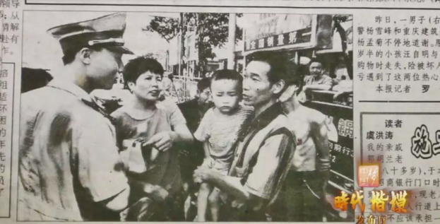 有兩個(gè)陌生男子,聲稱是他的爸爸,試圖領(lǐng)走他。幸虧遇到了剛參加工作不久的21歲民警楊雪峰。楊雪峰抱著他找遍了整個(gè)百貨公司,終于找到了滿頭大汗焦急萬(wàn)分的爸爸。