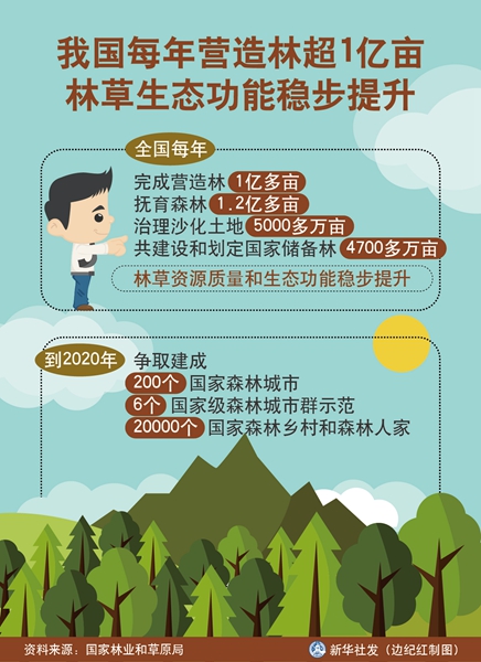 圖表:我國每年?duì)I造林超1億畝 林草生態(tài)功能穩(wěn)步提升 新華社發(fā) 邊紀(jì)紅 制圖