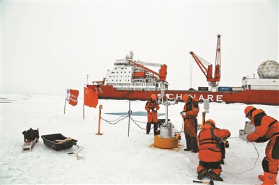 “和以往的北極科考相比,‘九北’冰上作業(yè)涉及的學(xué)科和種類沒有太大差別?!钡瓶缄?duì)首席科學(xué)家助理雷瑞波總結(jié)稱,這次冰上作業(yè)的一個(gè)顯著特點(diǎn)是加強(qiáng)了無人值守觀測(cè)系統(tǒng)的布放,包括3套自動(dòng)氣象站、2套無人冰站、3個(gè)海洋剖面浮標(biāo)、24個(gè)海冰物質(zhì)平衡浮標(biāo)、15套海冰漂移浮標(biāo)等?!按舜尾挤诺臒o人觀測(cè)系統(tǒng)的數(shù)量創(chuàng)下歷次北極科考之最,并且其中大部分(約占80%)均為我國自主研發(fā)或集成?!崩兹鸩ㄕf,這些將為研究北極地區(qū)氣、海、冰的相互作用過程及其對(duì)北極生態(tài)系統(tǒng)和海洋環(huán)境的影響提供有力支撐。