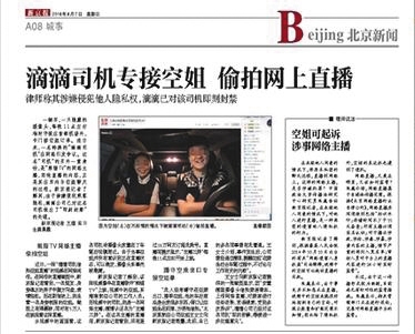2016年,新京報(bào)曾報(bào)道過(guò)有滴滴司機(jī)在“熊貓TV”進(jìn)行邊開車邊直播的行為。當(dāng)時(shí),這名滴滴司機(jī)在車內(nèi)安裝了一只隱藏的攝像頭,每晚11點(diǎn)左右準(zhǔn)時(shí)守候在首都機(jī)場(chǎng)外,專門接空姐訂單。而他直播的內(nèi)容,正是其在車內(nèi)與空姐聊天的過(guò)程。由于直播內(nèi)容涉嫌侵犯乘客隱私,滴滴公司已對(duì)這名司機(jī)做出了“即刻封禁”的處理,“熊貓TV”平臺(tái)也于第一時(shí)間對(duì)涉事主播做出封停處理,并對(duì)事件中的空姐表示歉意。