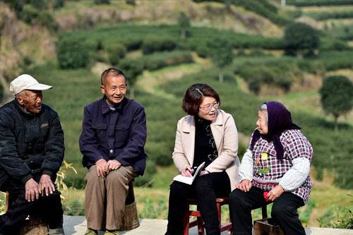 一位鎮(zhèn)黨委書記(右二)在走訪貧困戶 劉軍喜 攝