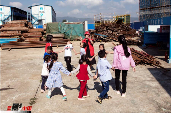 每年暑假,留守兒童來到父母工作的工地,享受團聚時光。新華網(wǎng) 鮑禹 攝