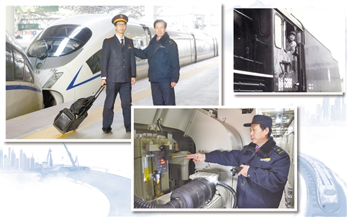 在鐵路行業(yè),一家三代是火車司機的很少見。京滬線南京東機務(wù)段就有一戶“火車司機世家”,祖孫三代姜福臨、姜愛舜、瞿俊杰都是火車司機。從蒸汽機車到內(nèi)燃機車,從內(nèi)燃機車到電力機車,從電力機車到高鐵“復(fù)興號”動車組,從慢時速30公里“飛”到350公里,從環(huán)境“臟亂差”變?yōu)椤皾崈裘馈薄患胰艘娮C了不同時代的鐵路歷史變遷,見證了中國鐵路的發(fā)展速度。