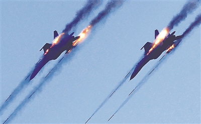 中方殲擊機(jī)對(duì)地面目標(biāo)進(jìn)行火力打擊。