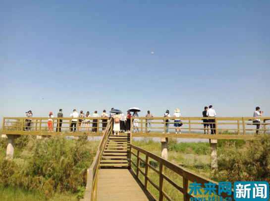 采訪團(tuán)記者們登上瞭望塔拍攝保護(hù)區(qū)內(nèi)的鳥(niǎo)兒。 未來(lái)網(wǎng)記者 劉文靜 攝