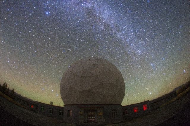 銀河下的13.7米毫米波射電望遠(yuǎn)鏡