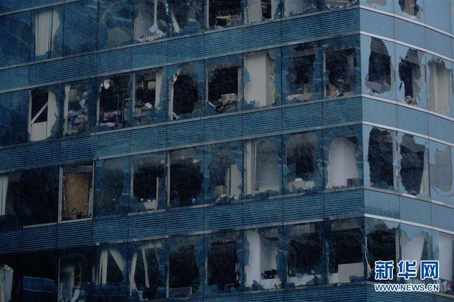 位于香港九龍半島紅磡海濱的一座寫字樓,窗戶玻璃破碎嚴重