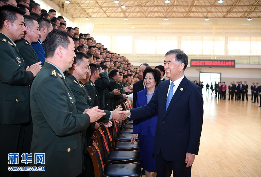 在慰問武警寧夏總隊官兵代表時,汪洋說,新中國成立特別是自治區(qū)成立以來,廣大武警官兵發(fā)揚光榮革命傳統(tǒng),聽黨指揮、立場堅定,無私奉獻、不怕犧牲,在執(zhí)勤處突、反恐維穩(wěn)、搶險救援等緊要關(guān)頭發(fā)揮關(guān)鍵作用,有力維護了社會和諧穩(wěn)定、人民生命財產(chǎn)安全,為捍衛(wèi)黨的領(lǐng)導(dǎo)、維護社會主義制度,為促進寧夏改革發(fā)展穩(wěn)定建立了不可磨滅的功勛。