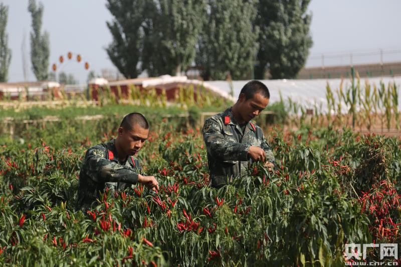 官兵在摘辣椒(央廣網(wǎng)記者 李建峰 攝)
