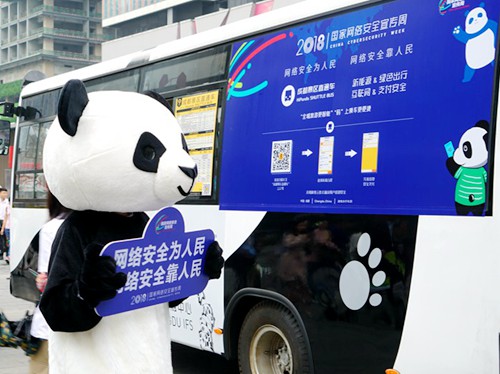 圖注:國(guó)寶大熊貓成為今年網(wǎng)安周活動(dòng)的“形象大使” (攝影 楊波)