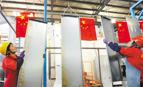 圖② 9月30日,江西省新余市渝水區(qū)珠珊鎮(zhèn)板橋工業(yè)園,江西劍安消防設備有限公司的生產車間里,員工忙生產,為國慶獻禮。 鐘婷 攝