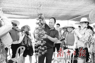 陽(yáng)江陽(yáng)西縣程村鎮(zhèn)紅光村村干部介紹生蠔養(yǎng)殖。張國(guó)勤 攝