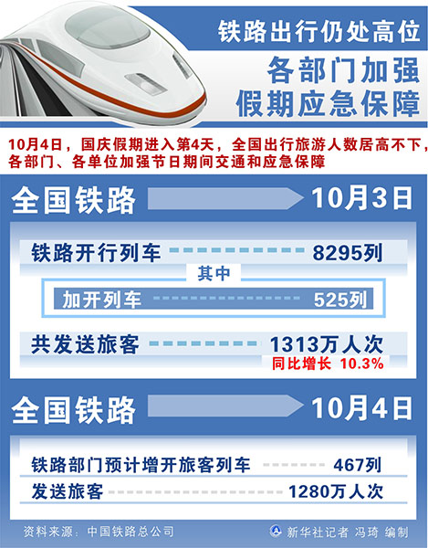 新華社北京10月4日電(記者樊曦、葉昊鳴)國慶假期進入第4天,全國出行旅游人數(shù)居高不下,各部門、各單位加強節(jié)日期間交通和應急保障。